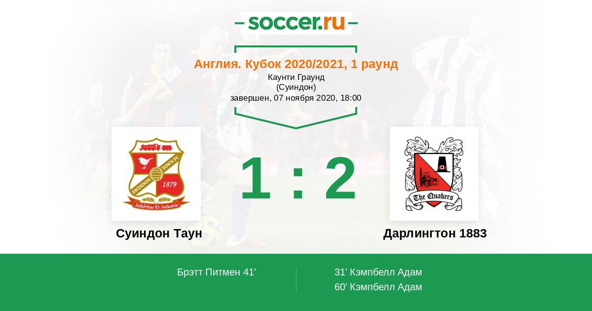 Суиндон Таун - Дарлингтон 1883: обзор матча 7 ноября 2020