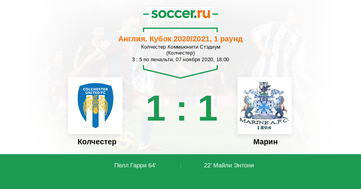 Колчестер - Марин: обзор матча 7 ноября 2020