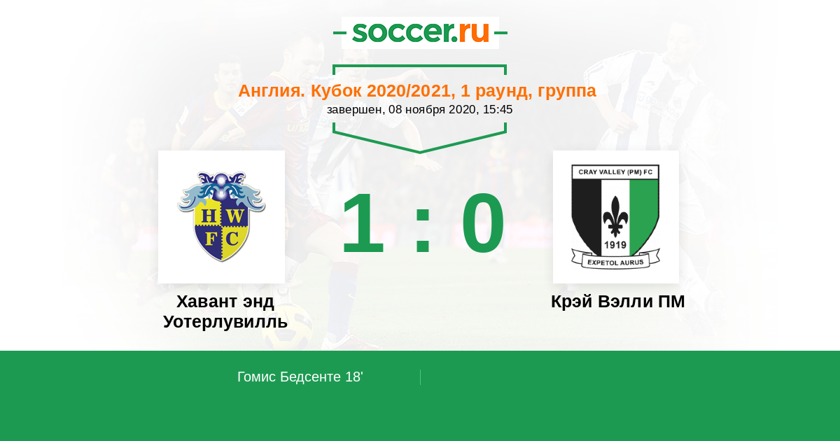 Хавант энд Уотерлувилль - Крэй Вэлли ПМ: обзор матча 8 ноября 2020