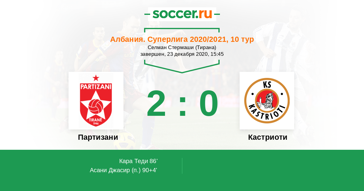 Партизани - Кастриоти: обзор матча 23 декабря 2020