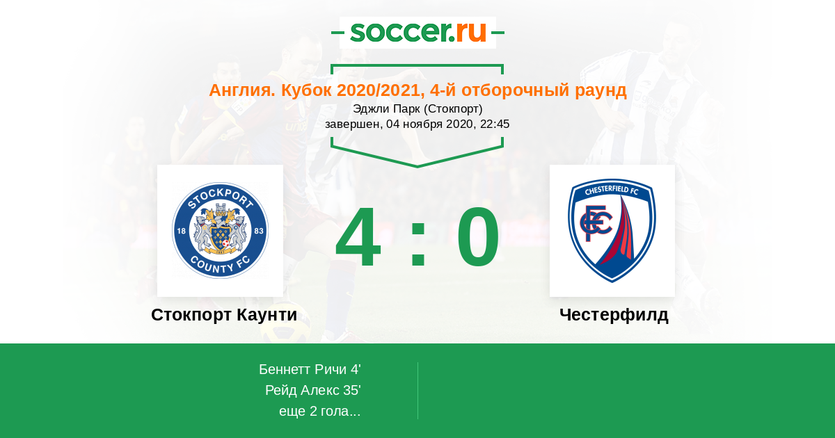 Стокпорт Каунти - Честерфилд: обзор матча 4 ноября 2020