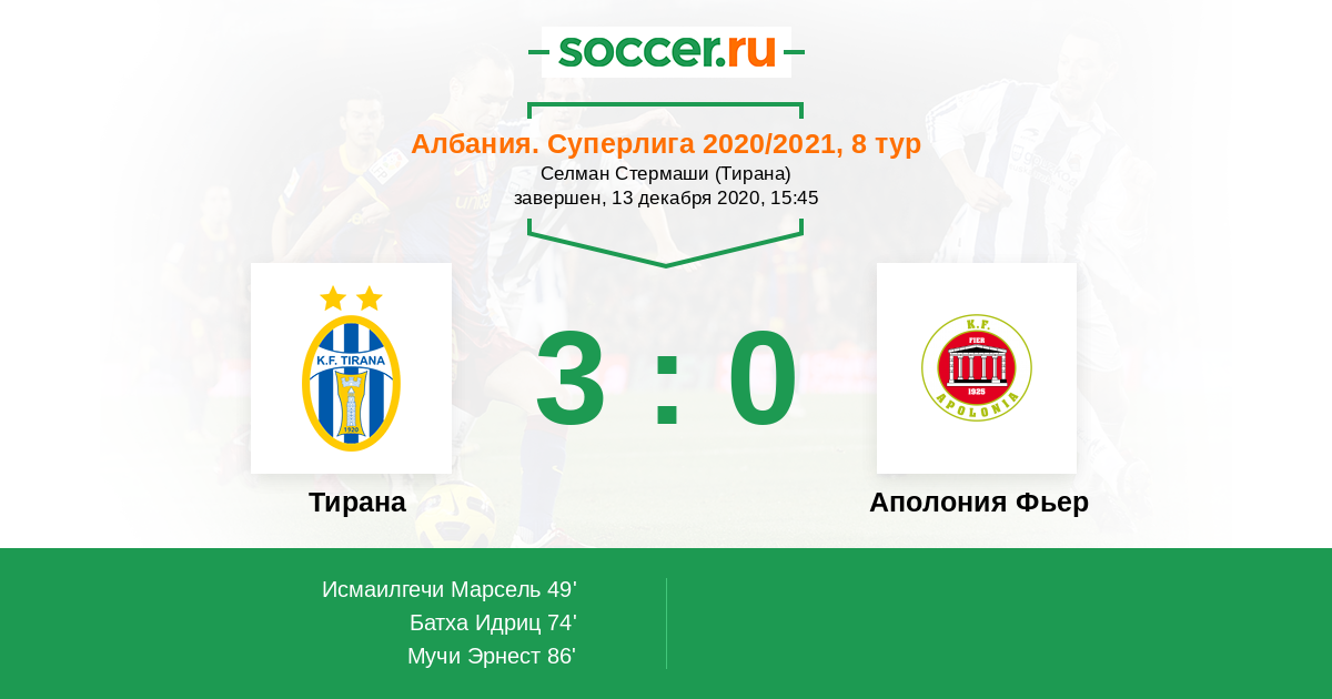 Тирана - Аполония Фьер: обзор матча 13 декабря 2020