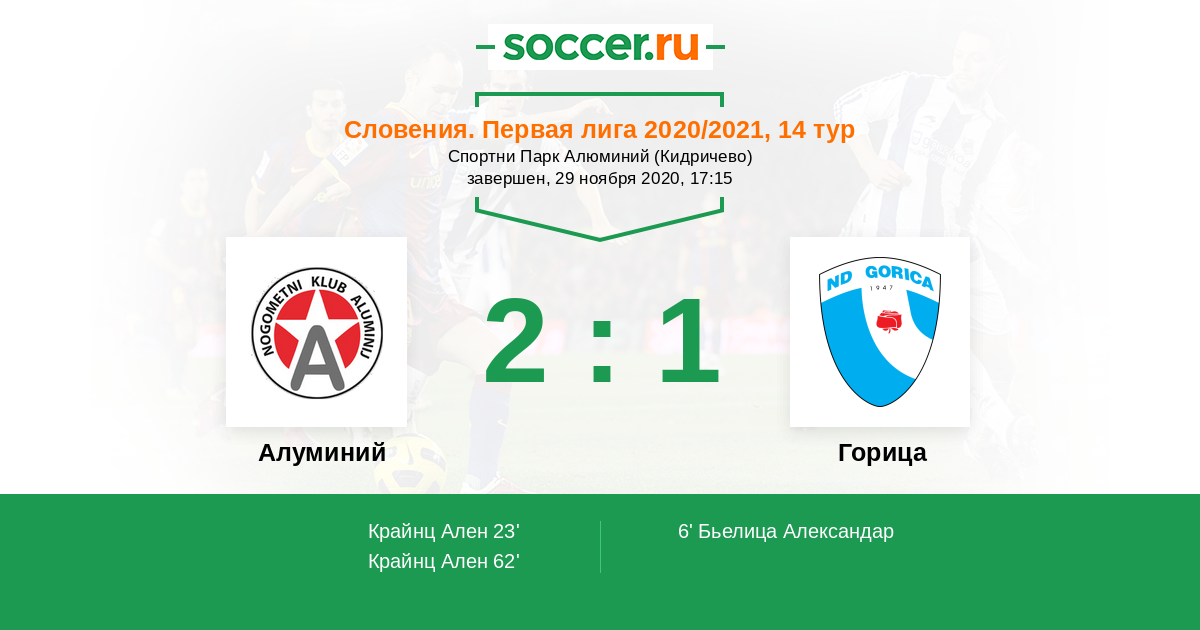 Алуминий - Горица: обзор матча 29 ноября 2020