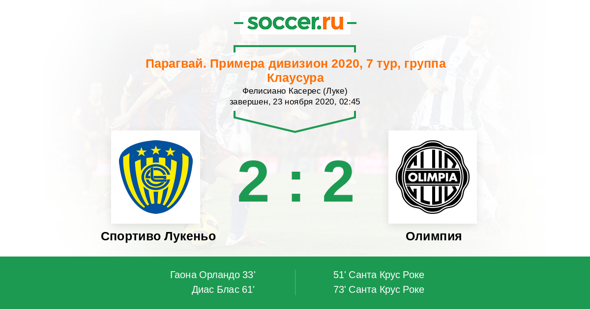 Спортиво Лукеньо - Олимпия: обзор матча 23 ноября 2020