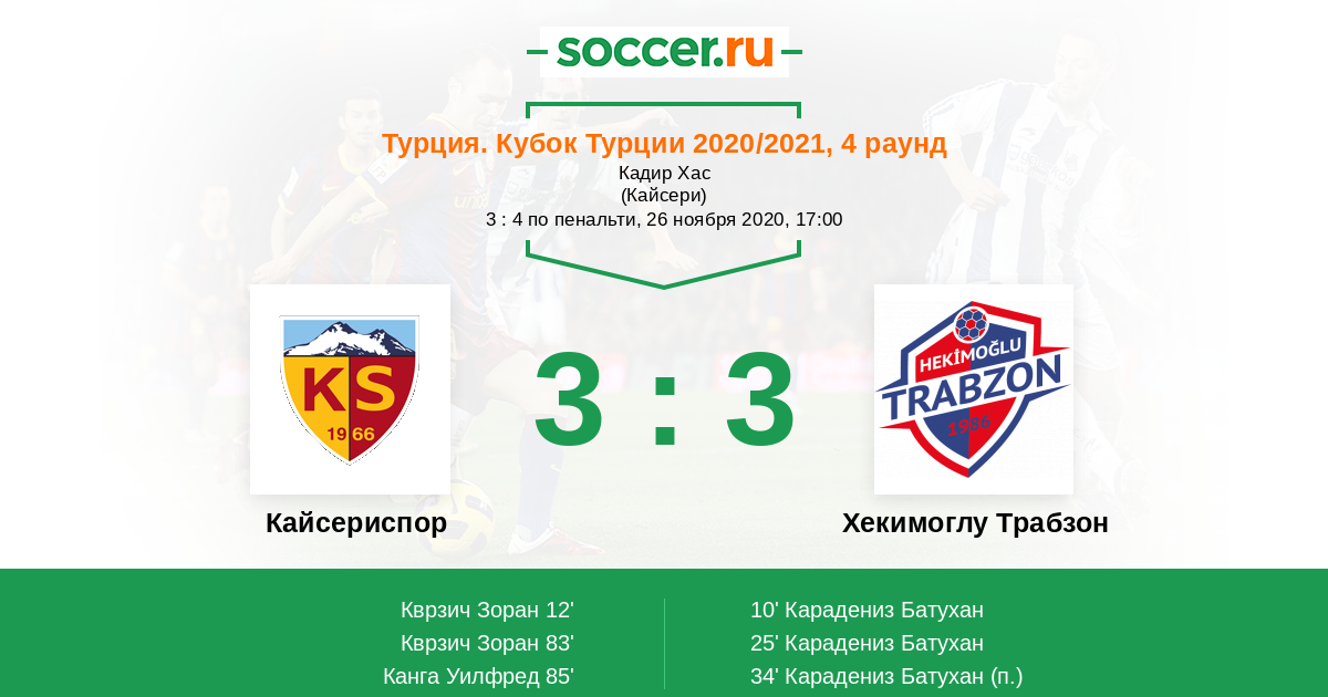 Кайсериспор - Хекимоглу Трабзон: обзор матча 26 ноября 2020