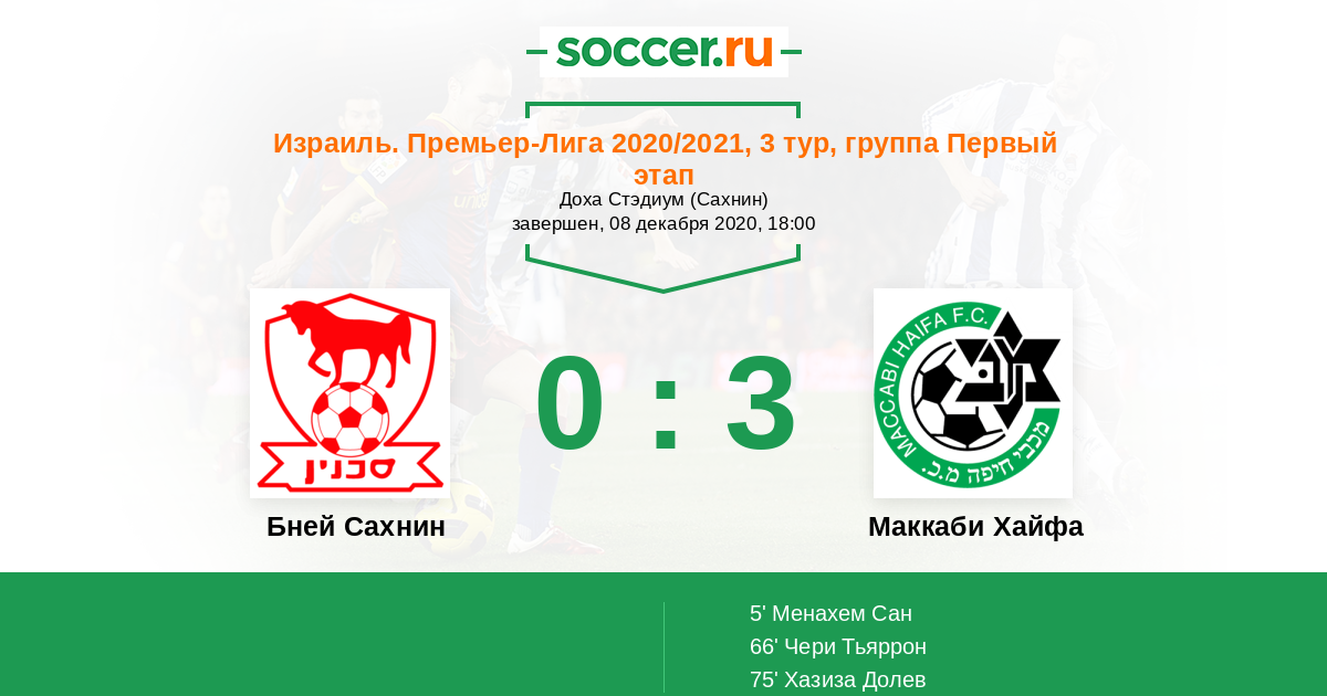 Бней Сахнин - Маккаби Хайфа: обзор матча 8 декабря 2020