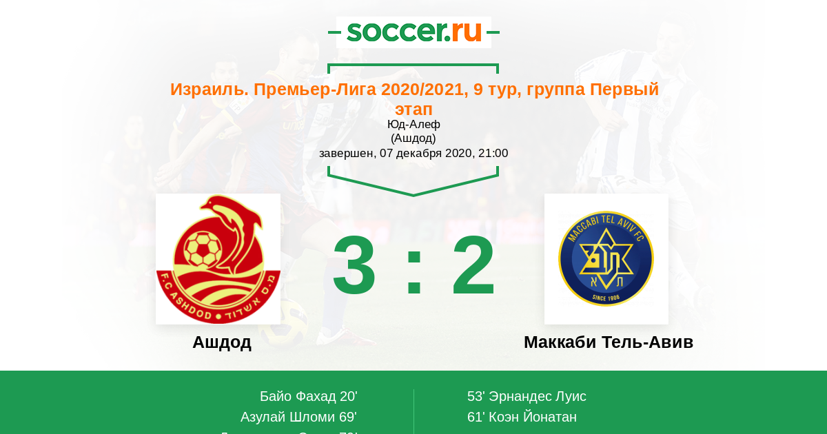 Ашдод - Маккаби Тель-Авив: обзор матча 7 декабря 2020