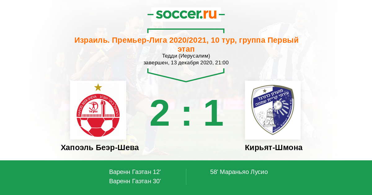 Хапоэль Беэр-Шева - Кирьят-Шмона: обзор матча 13 декабря 2020