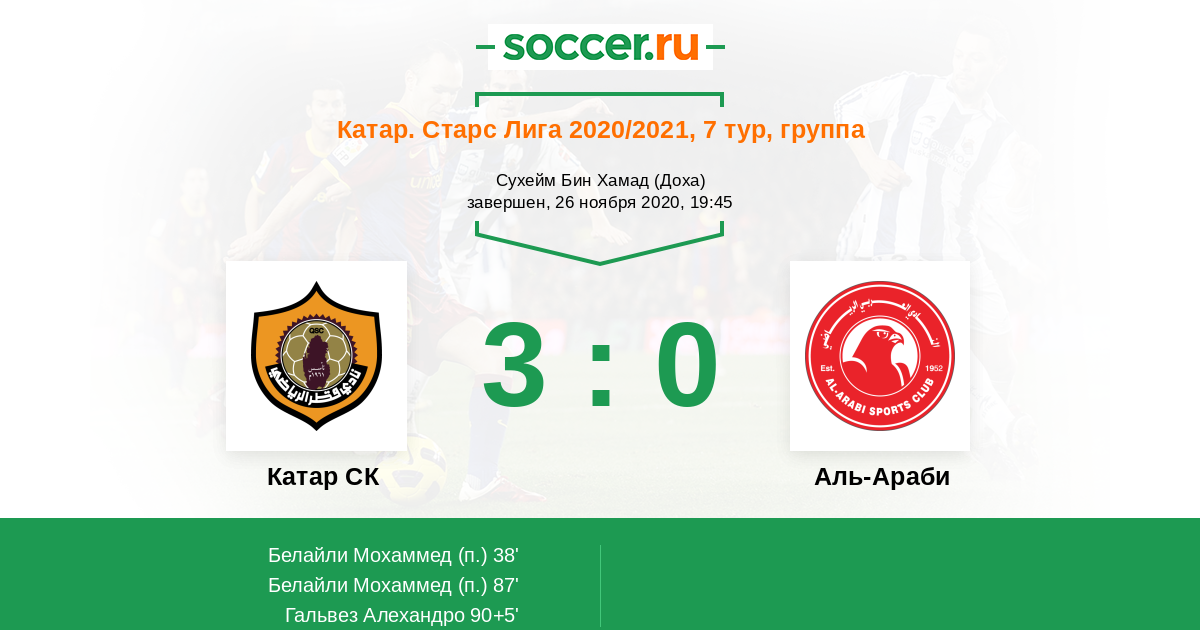 Катар СК - Аль-Араби: обзор матча 26 ноября 2020
