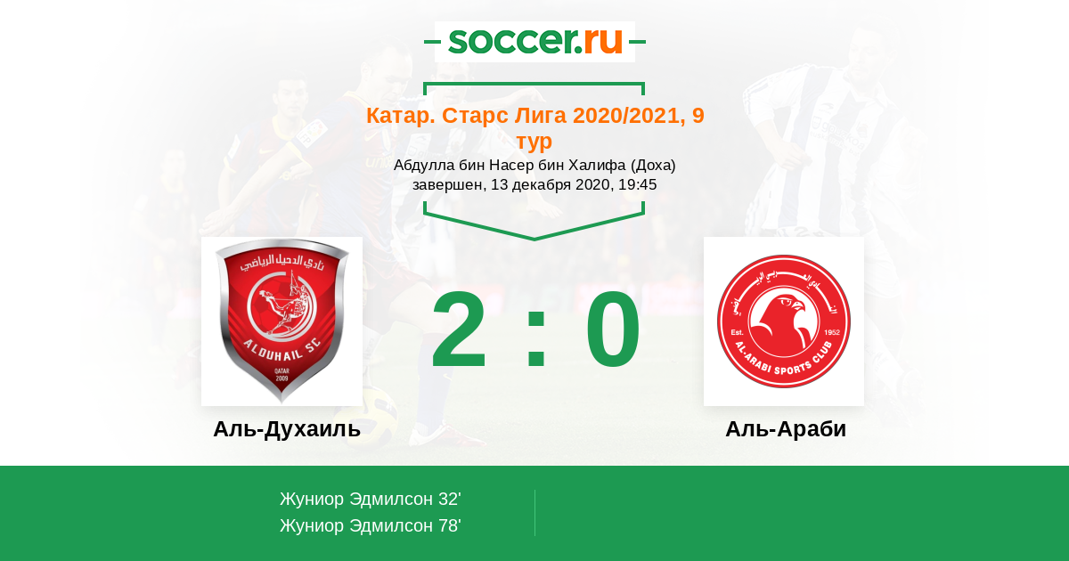 Аль-Духаиль - Аль-Араби: обзор матча 13 декабря 2020