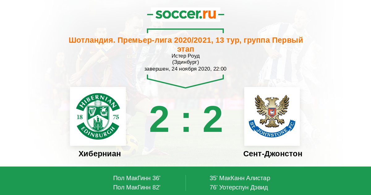 Хиберниан - Сент-Джонстон: обзор матча 24 ноября 2020