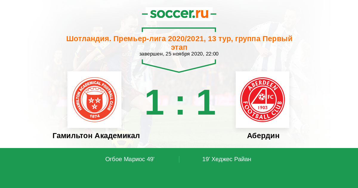 Гамильтон Академикал - Абердин: обзор матча 25 ноября 2020