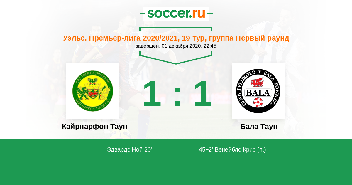 Кайрнарфон Таун - Бала Таун: обзор матча 1 декабря 2020