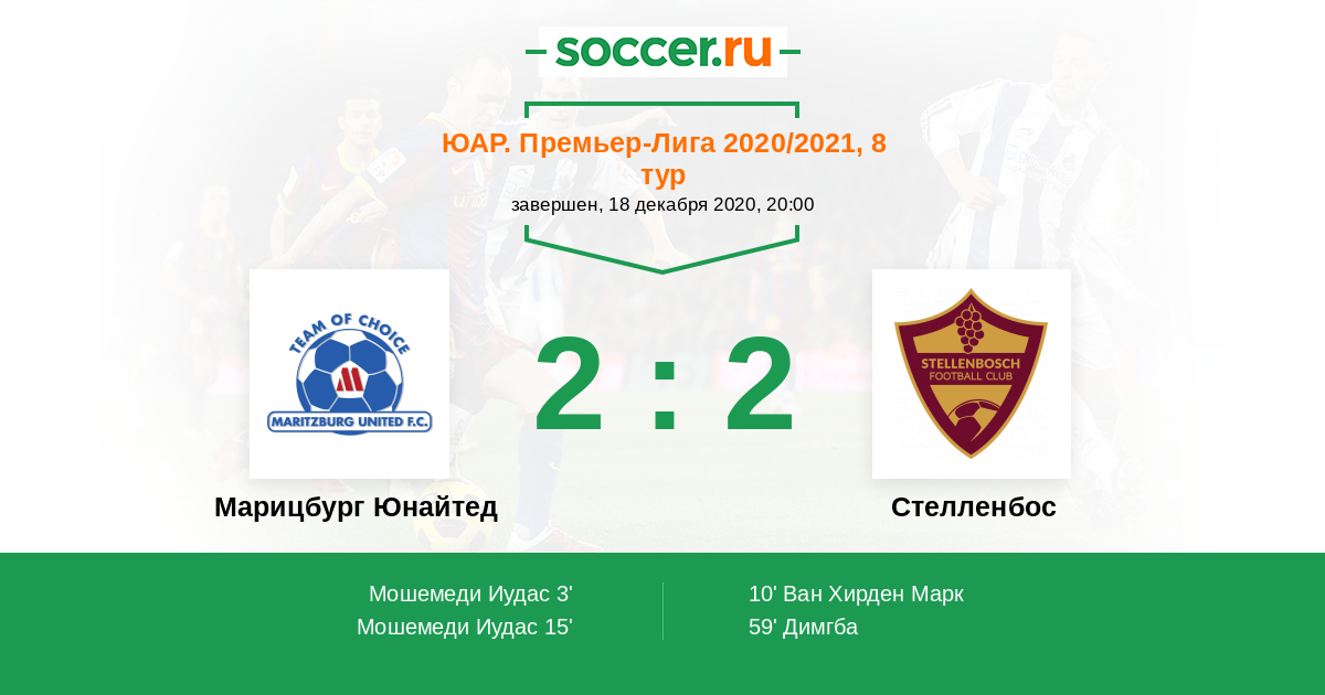 Марицбург Юнайтед - Стелленбос: обзор матча 18 декабря 2020