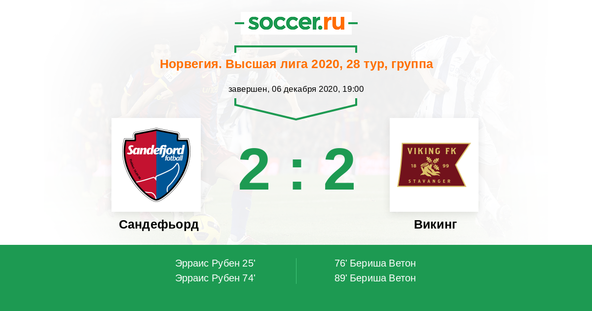 Сандефьорд - Викинг: обзор матча 6 декабря 2020