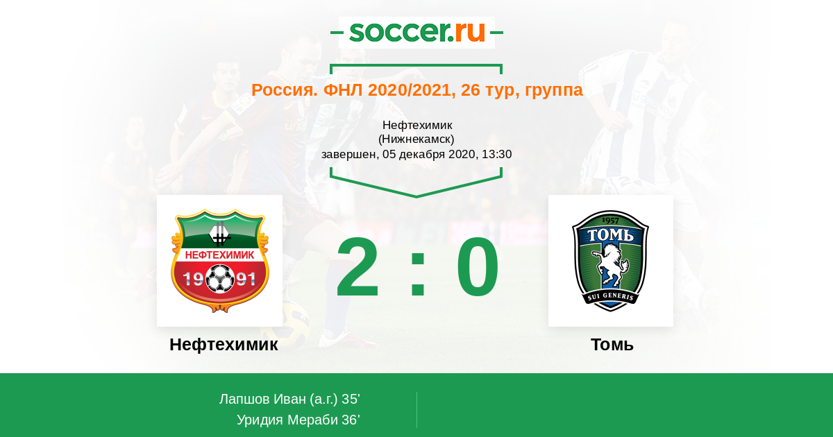 Нефтехимик - Томь: обзор матча 5 декабря 2020