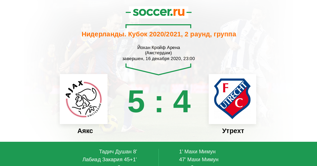Аякс - Утрехт: обзор матча 16 декабря 2020