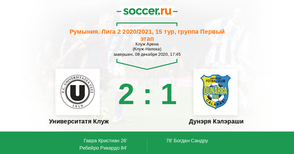 Университатя Клуж - Дунэря Кэлэраши: обзор матча 8 декабря 2020