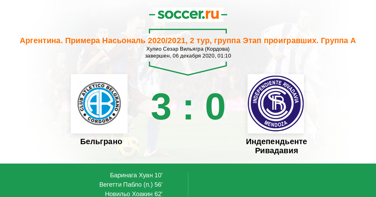 Бельграно - Индепендьенте Ривадавия: обзор матча 6 декабря 2020