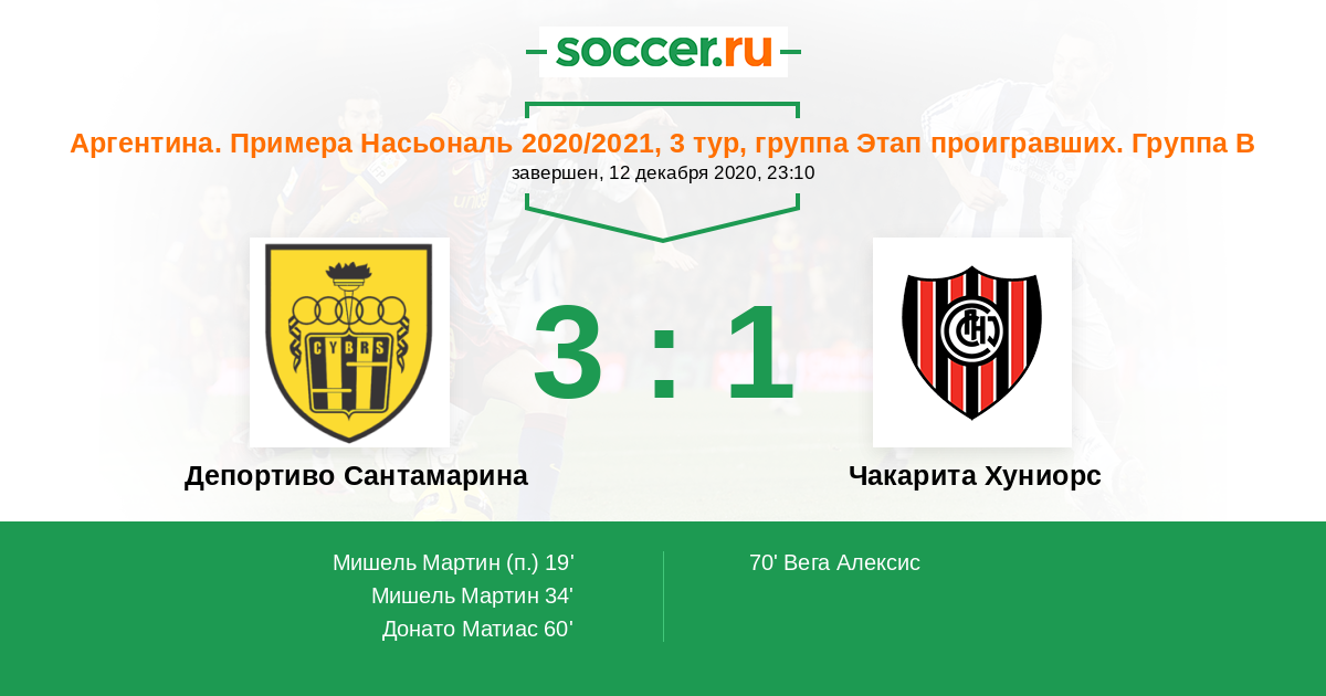 Депортиво Сантамарина - Чакарита Хуниорс: обзор матча 12 декабря 2020