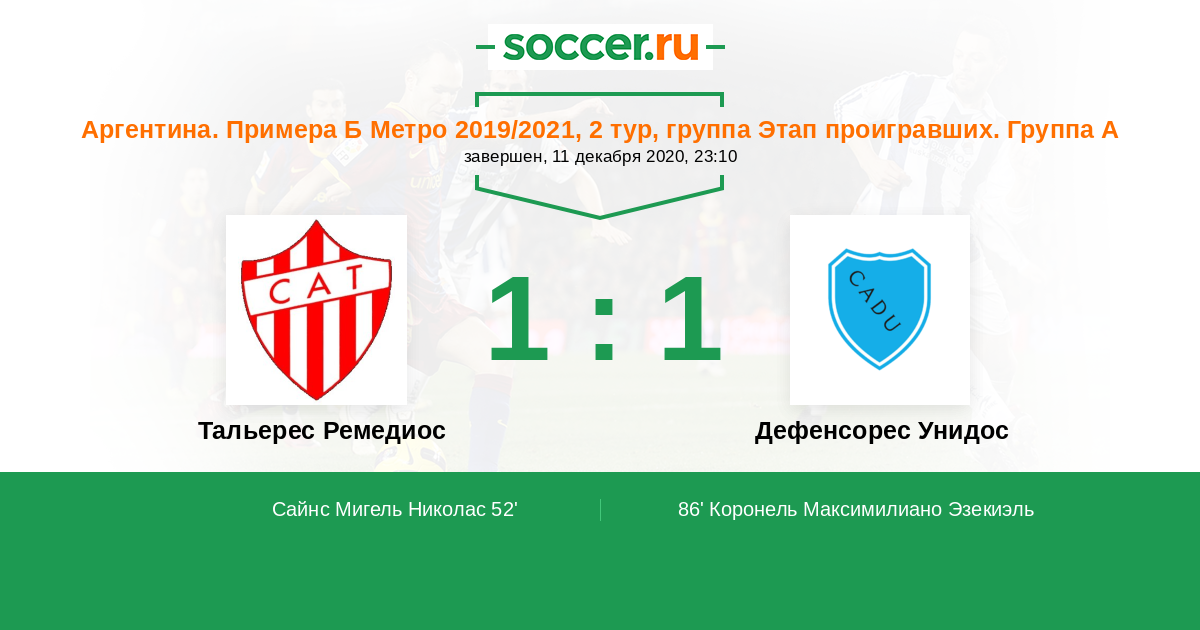 Тальерес Ремедиос - Дефенсорес Унидос: обзор матча 11 декабря 2020