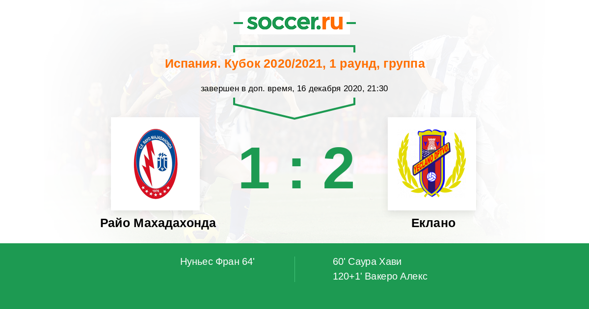 Райо Махадахонда - Еклано: обзор матча 16 декабря 2020