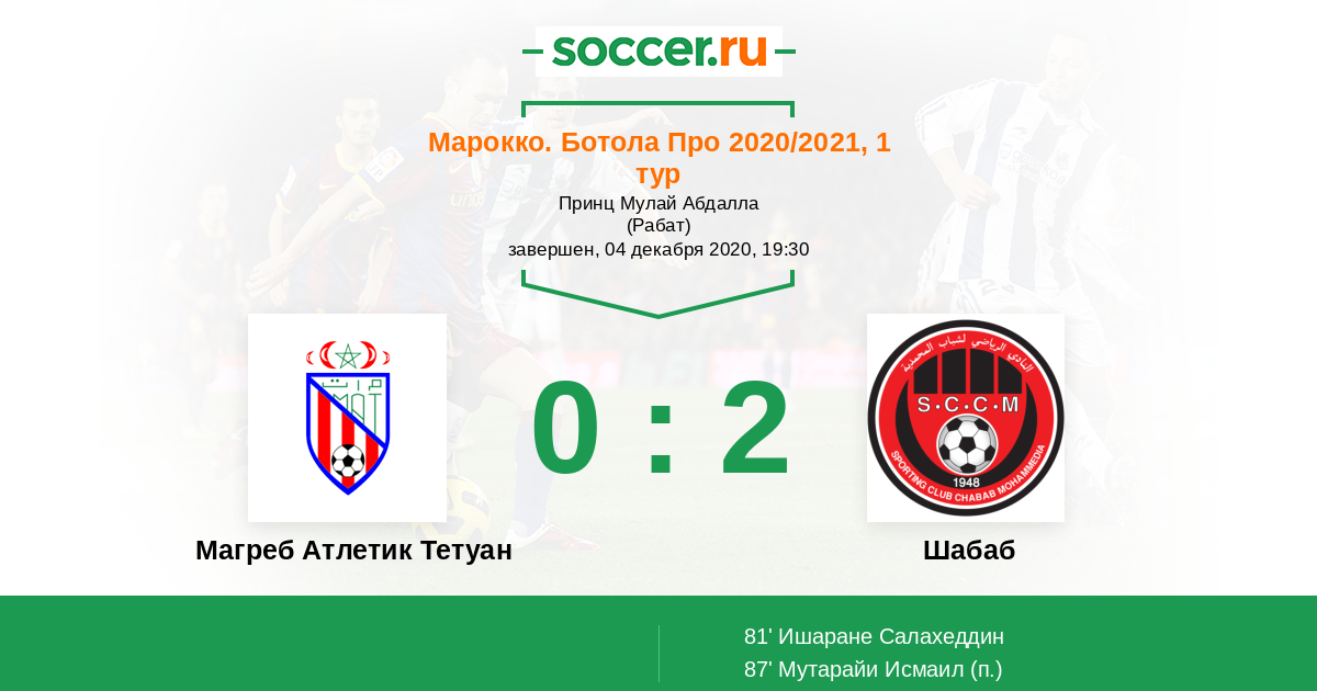Магреб Атлетик Тетуан - Шабаб: обзор матча 4 декабря 2020