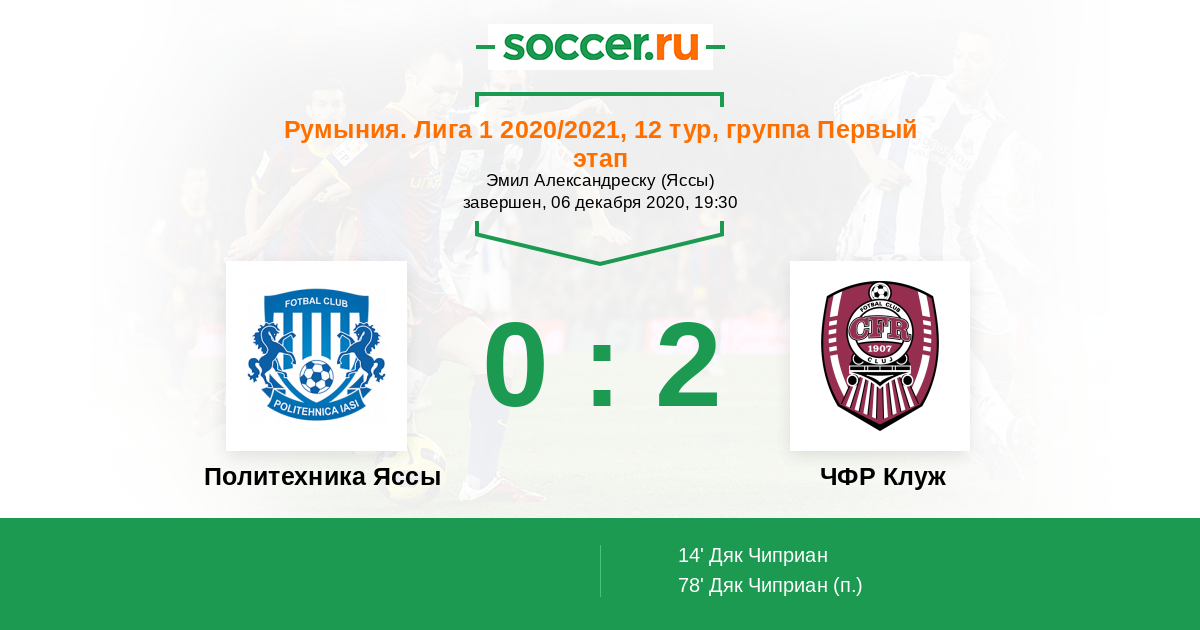 Политехника Яссы - ЧФР Клуж: обзор матча 6 декабря 2020
