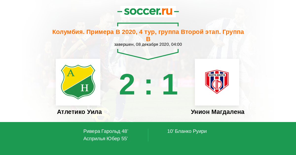 Атлетико Уила - Унион Магдалена: обзор матча 8 декабря 2020