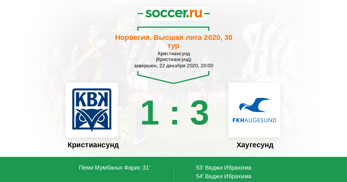 Кристиансунд - Хаугесунд: обзор матча 22 декабря 2020