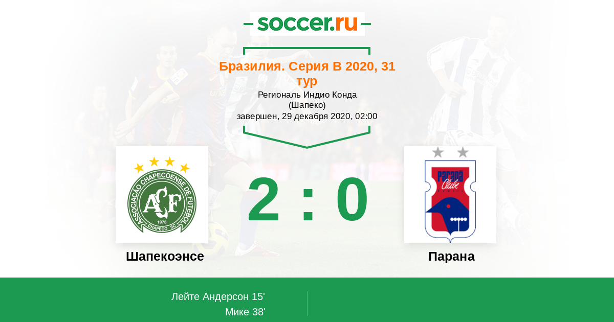 Шапекоэнсе - Парана: обзор матча 29 декабря 2020