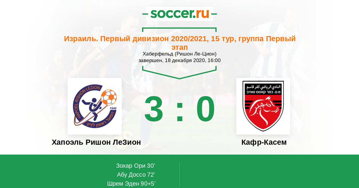 Хапоэль Ришон ЛеЗион - Кафр-Касем: обзор матча 18 декабря 2020