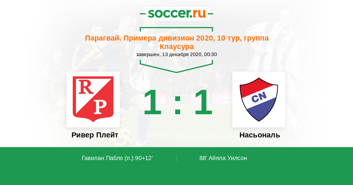 Ривер Плейт - Насьональ: обзор матча 13 декабря 2020
