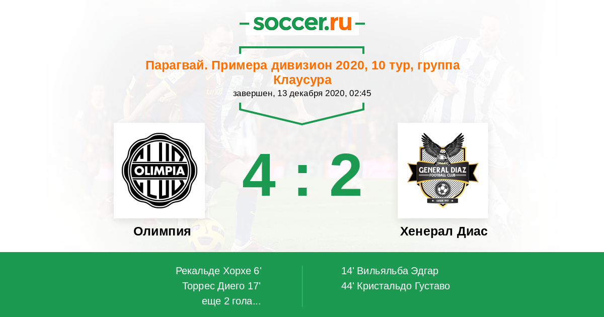 Олимпия - Хенерал Диас: обзор матча 13 декабря 2020