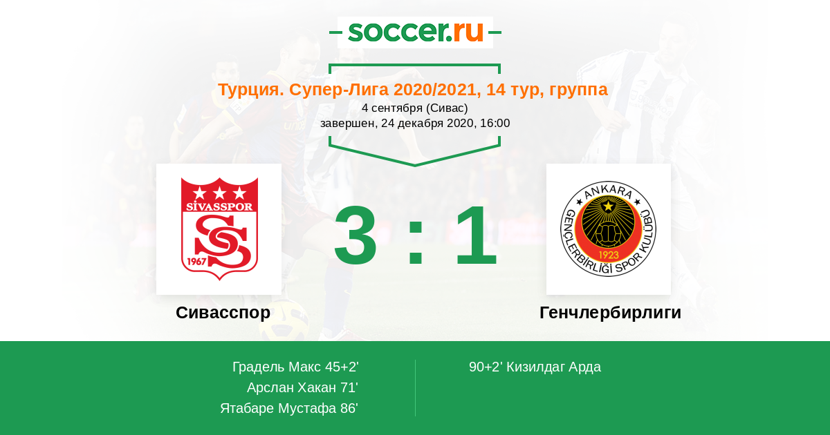 Сивасспор - Генчлербирлиги: обзор матча 24 декабря 2020