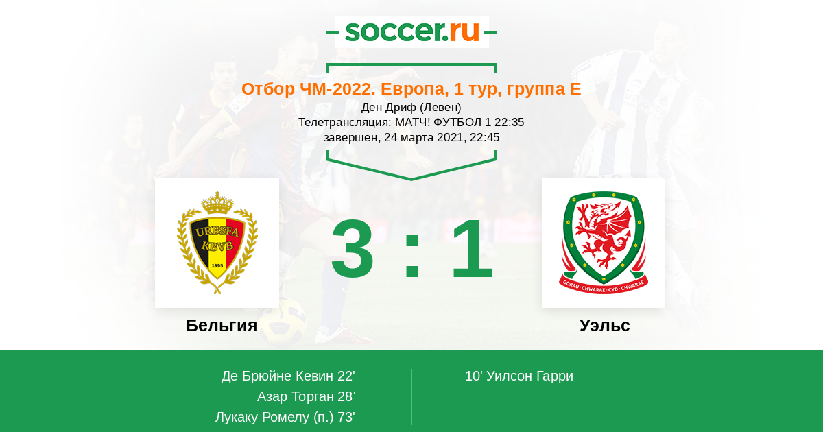 Бельгия - Уэльс: обзор матча 24 марта 2021