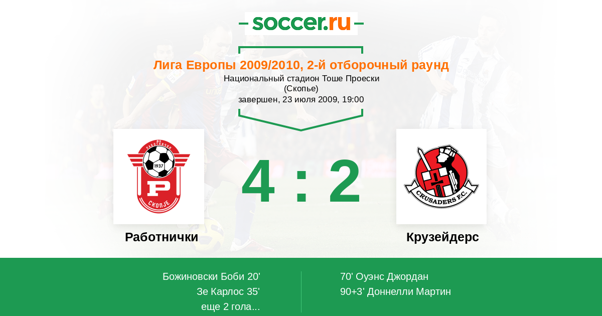 Работнички - Крузейдерс: обзор матча 23 июля 2009