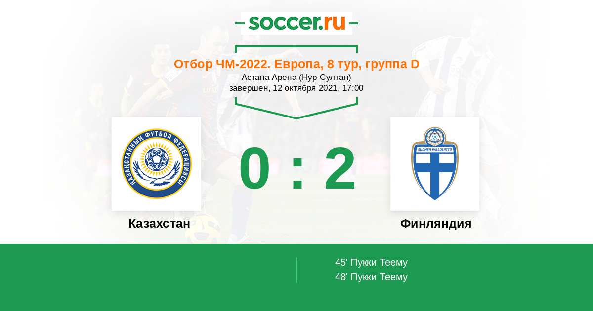 Казахстан - Финляндия: обзор матча 12 октября 2021