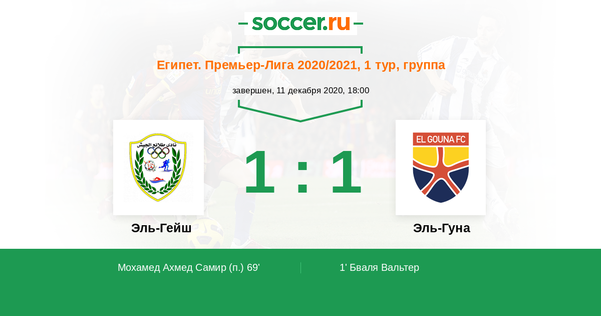 Эль-Гейш - Эль-Гуна: обзор матча 11 декабря 2020