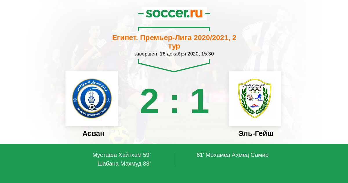 Асван - Эль-Гейш: обзор матча 16 декабря 2020