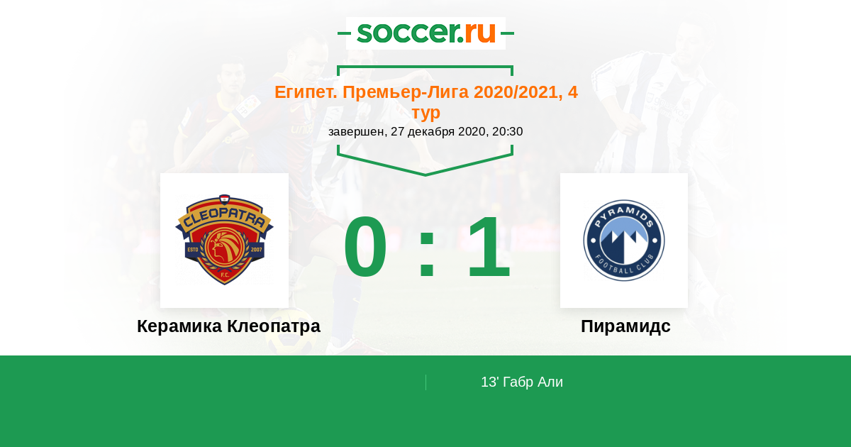 Керамика Клеопатра - Пирамидс: обзор матча 27 декабря 2020