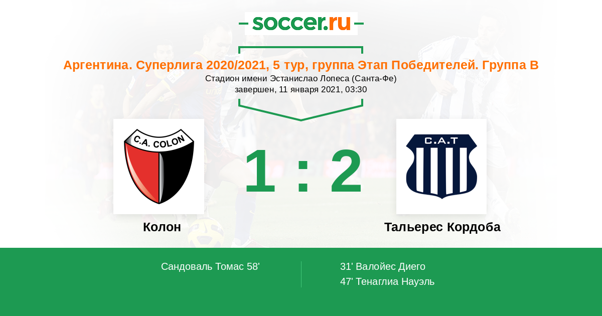 Колон - Тальерес Кордоба: обзор матча 11 января 2021