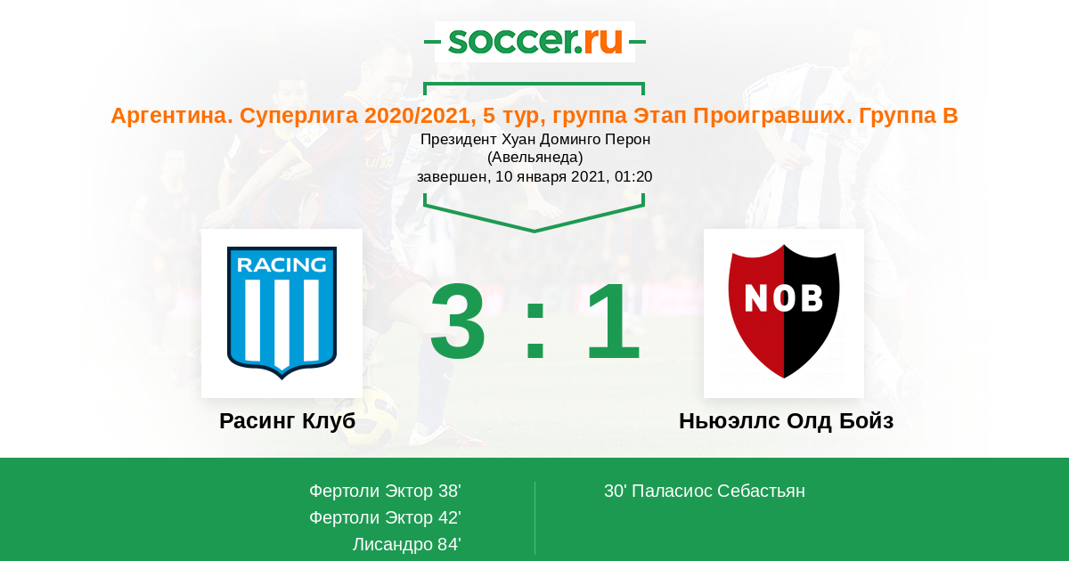 Расинг Клуб - Ньюэллс Олд Бойз: обзор матча 10 января 2021