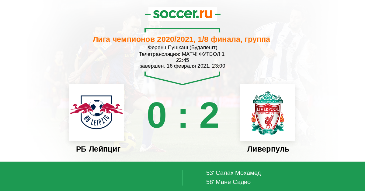 РБ Лейпциг - Ливерпуль: обзор матча 16 февраля 2021