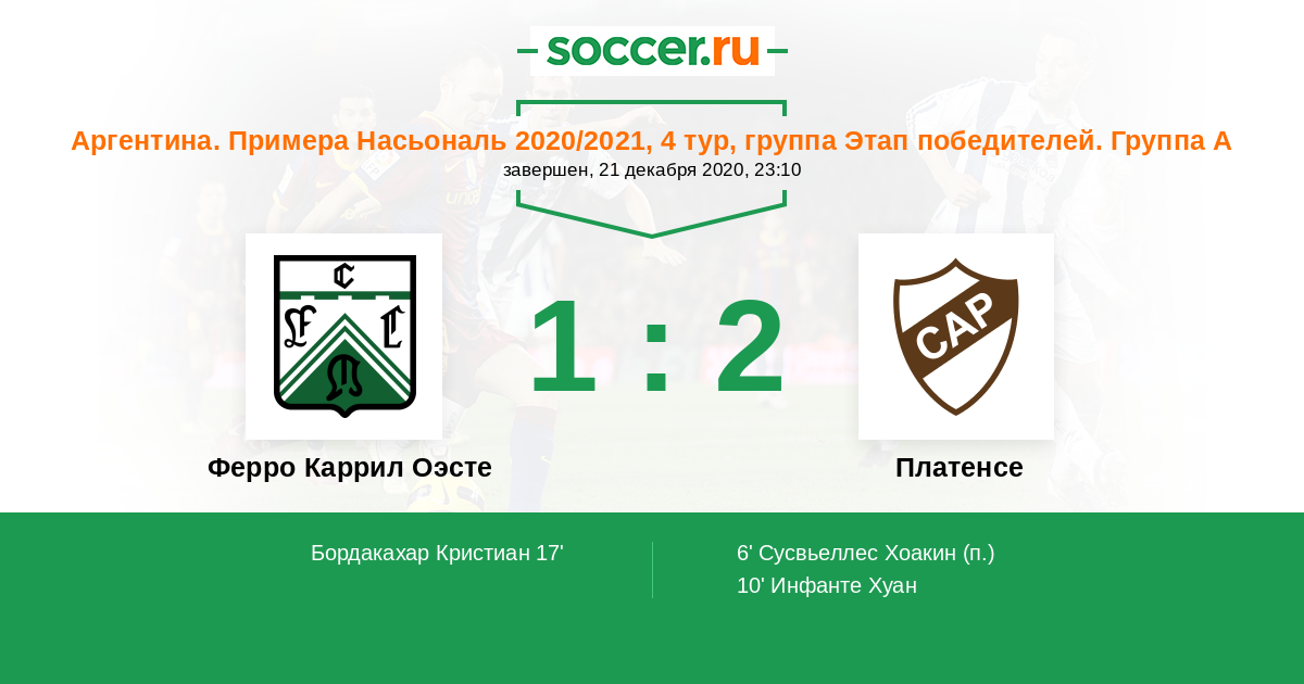 Ферро Каррил Оэсте - Платенсе: обзор матча 21 декабря 2020