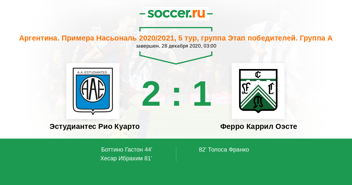 Эстудиантес Рио Куарто - Ферро Каррил Оэсте: обзор матча 28 декабря 2020