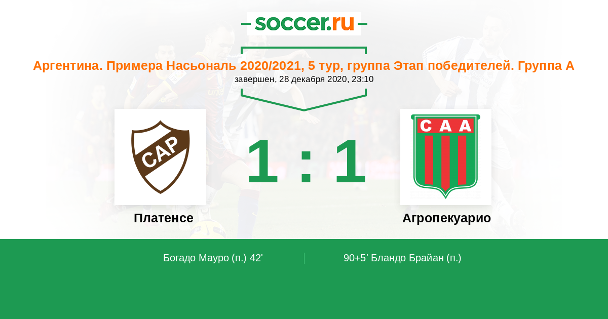 Платенсе - Агропекуарио: обзор матча 28 декабря 2020