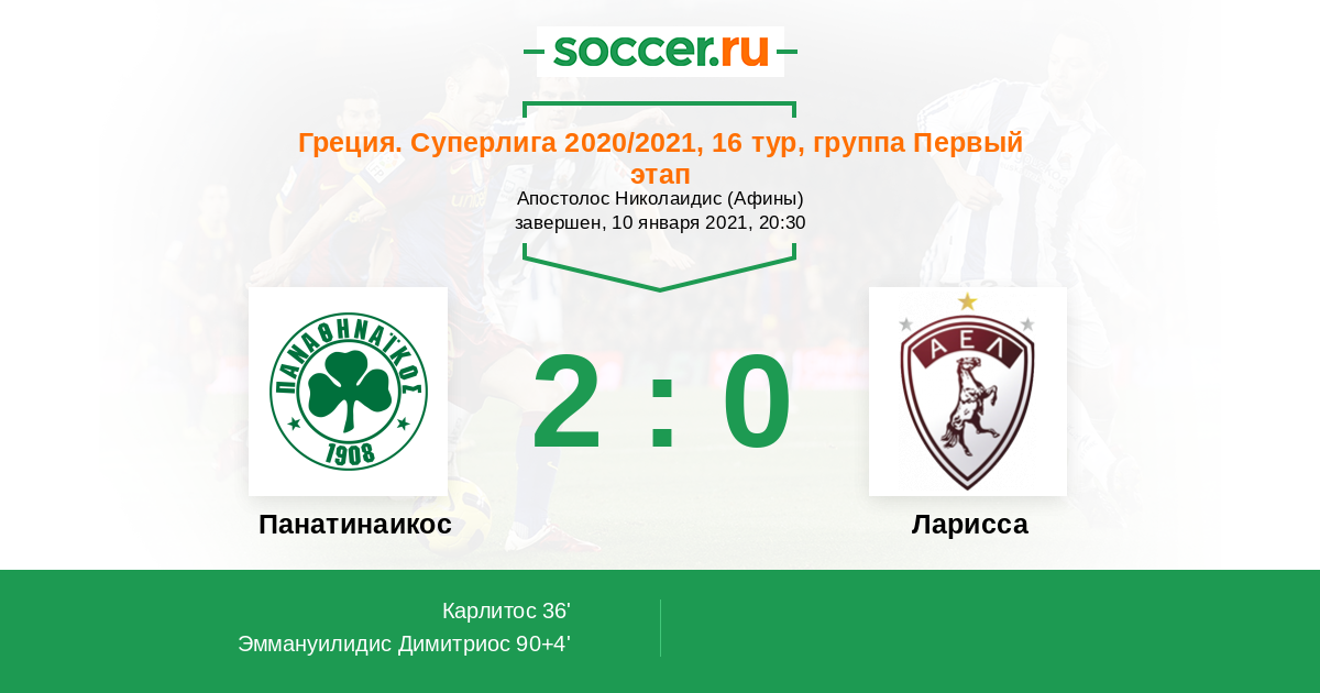 Панатинаикос - Ларисса: обзор матча 10 января 2021