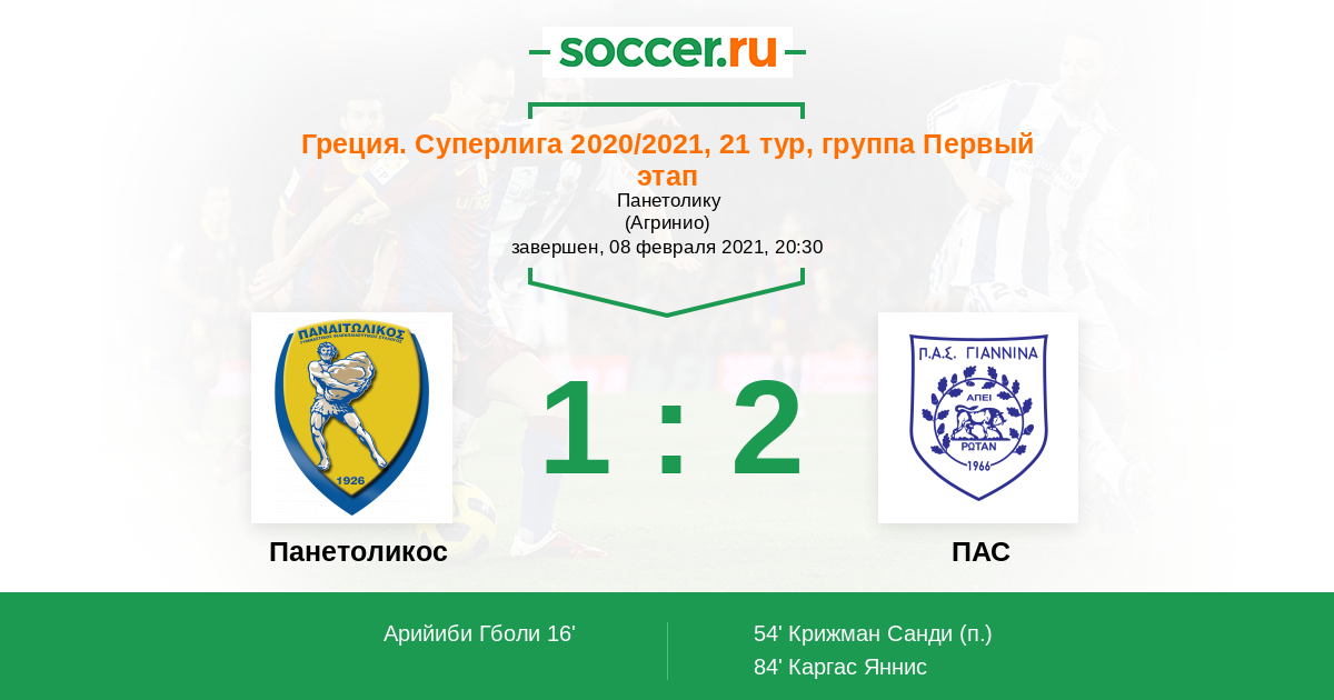 Панетоликос - ПАС: обзор матча 8 февраля 2021