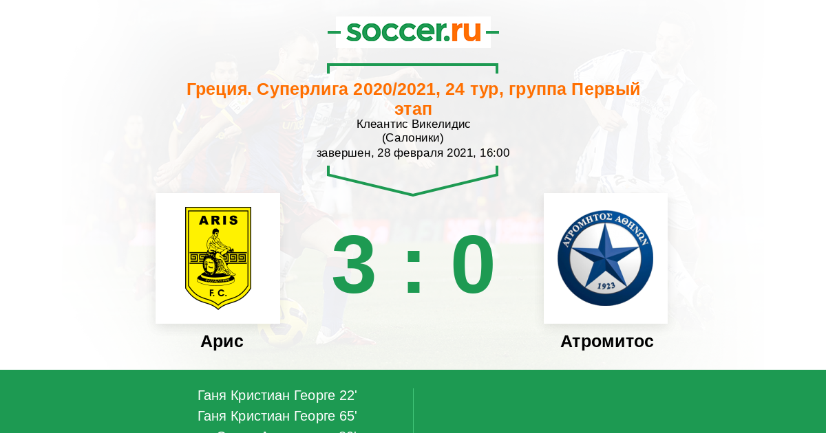 Арис - Атромитос: обзор матча 28 февраля 2021